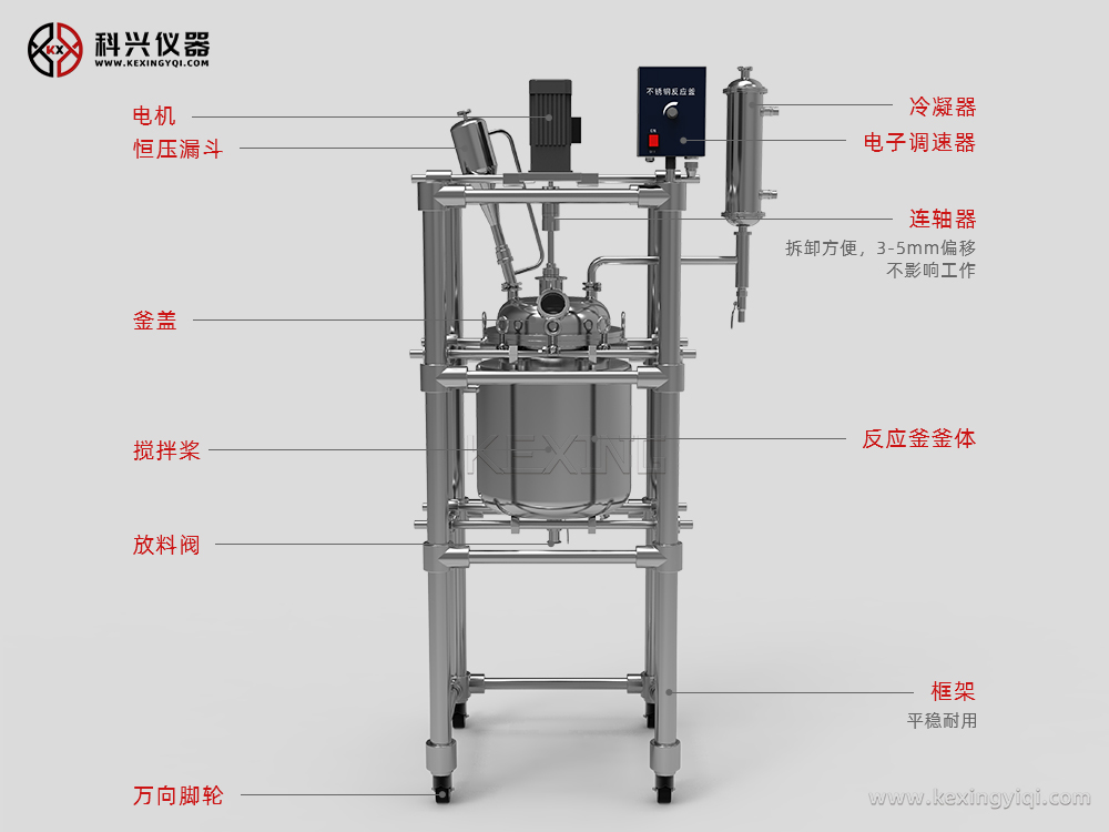 雙層不銹鋼反應(yīng)釜是常用的生化儀器,廣泛地被現(xiàn)代精細化工、生物制藥、科研實驗等行業(yè)所選用,可在恒速、恒力、恒溫的條件下做濃縮、蒸餾、回流、分離、提純反應(yīng),是教學、實驗、中試、生產(chǎn)的理想儀器設(shè)備。 通過雙層反應(yīng)釜夾層,注入恒溫的(高溫或低溫)熱溶液或冷卻液,對反應(yīng)釜內(nèi)的物料進行恒溫加熱或制冷,并且可以提供攪拌。物料在反應(yīng)釜內(nèi)進行反應(yīng),并能控制反應(yīng)溶液的蒸發(fā)與回流,反應(yīng)完畢,物料可從釜底的出料口放出,操作方便。是現(xiàn)代化學小樣、石油化工、中樣實驗、生物制藥及新材料合成的理想設(shè)備。